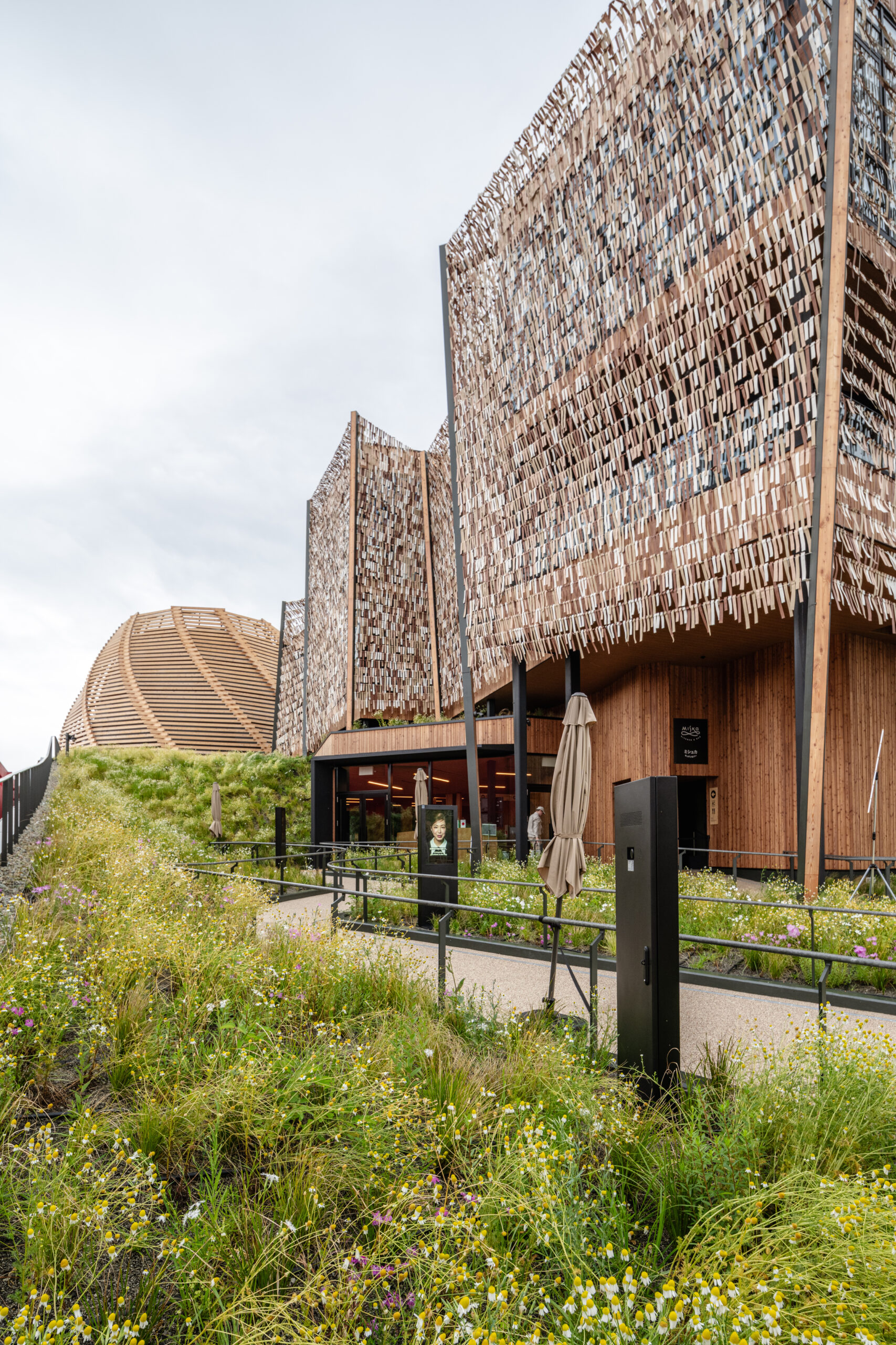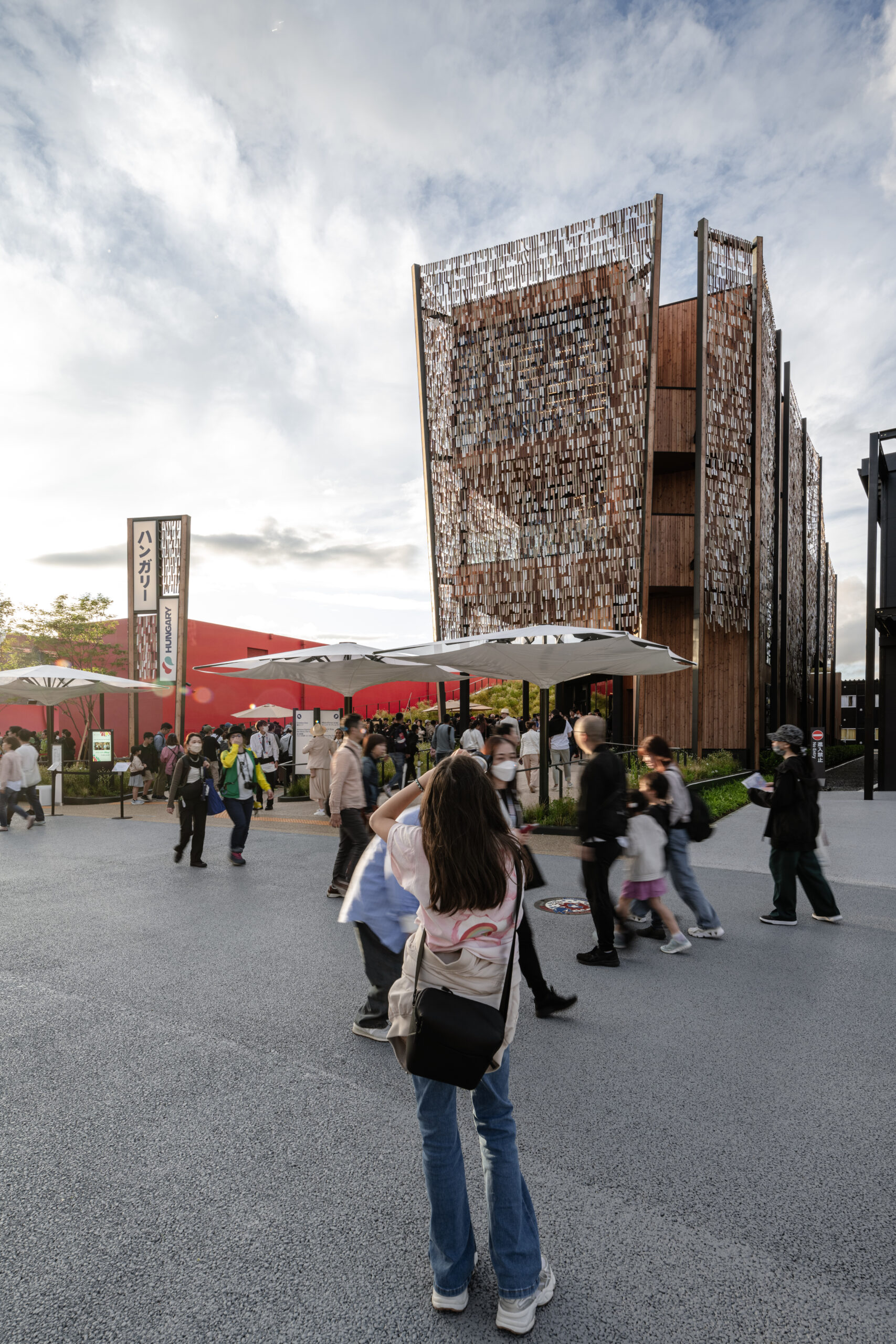展览探索匈牙利与日本音乐传统之间的联系——尤其是民间音乐中共同的五声音阶——并以柯达伊教学法作为概念上的桥梁。展馆同时作为商务与文化会面场所:二层设置会议与交流空间;餐饮区域设有小酒馆与葡萄酒吧;商店提供传统产品。建筑策略依托自然材料,并从匈牙利与日本的传统建造技艺中汲取灵感。