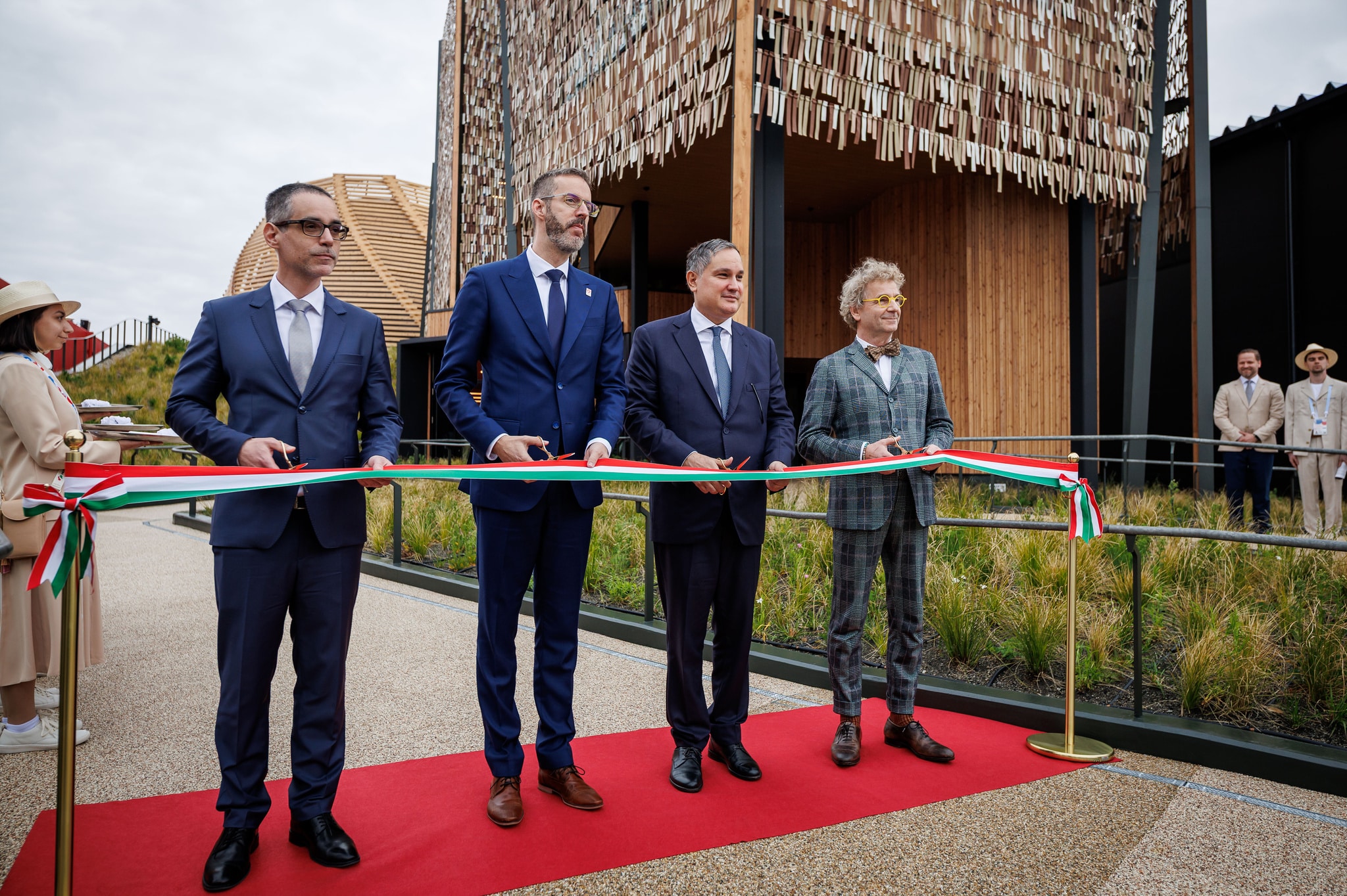 A Magyar Pavilont 2025. április 13-án Oszakában Nagy Márton nemzetgazdasági miniszter nyitotta meg ünnepélyes keretek között. Az épület az elsők között kapta meg a létesítési engedélyeket, és a világkiállítás egyik leggyorsabban megvalósult pavilonjaként készült el.